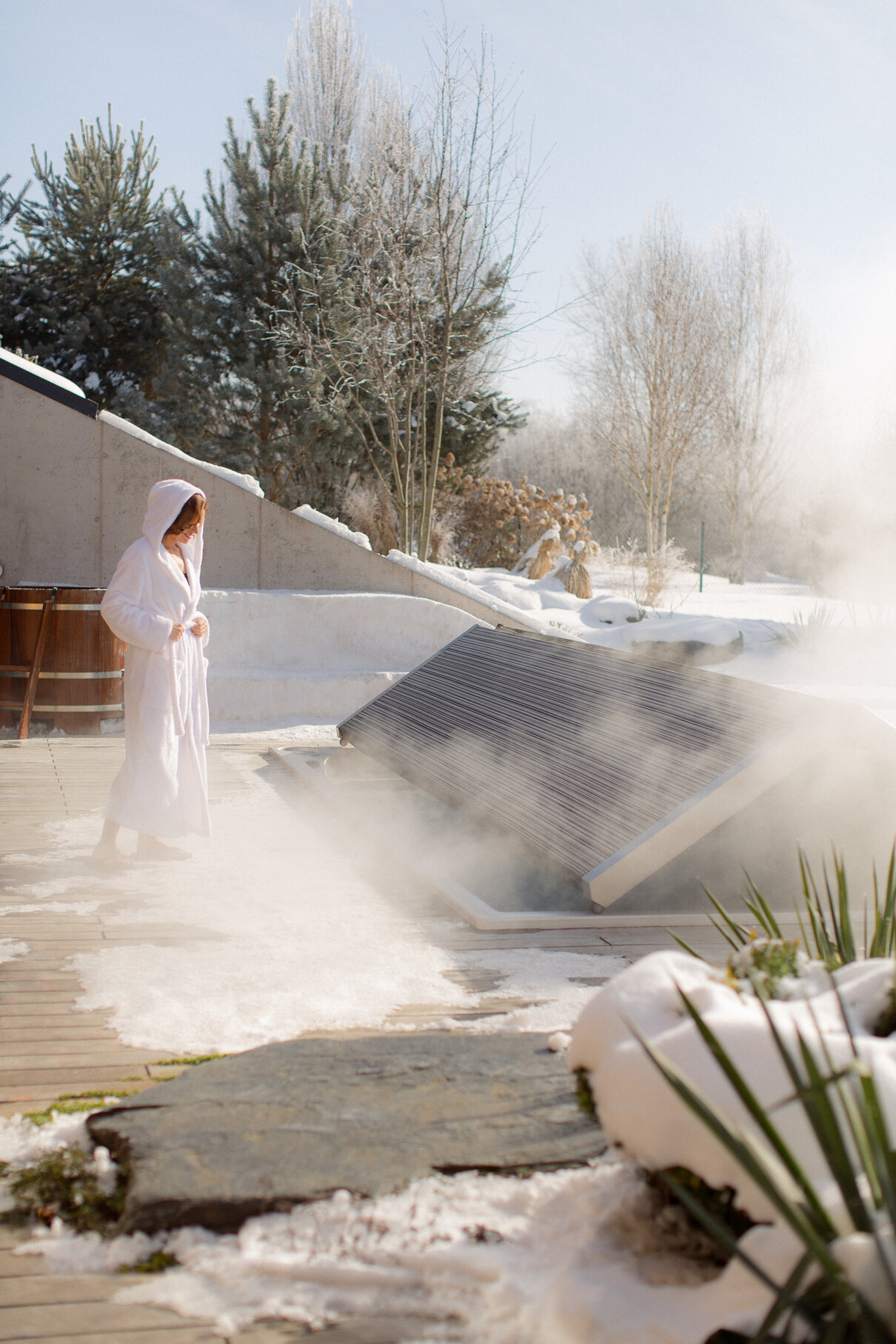 Energeticky nenáročný provoz swim spa zajišťuje komplexní systém izolace, jehož významnou součástí je termokryt, který tepelně izoluje vodní hladinu. Chytré technologie optimalizují chod swim spa dle vašeho koupacího režimu a maximálně tak zefektivňují spotřebu energie. Plavání ve swim spa si proto můžete užívat celoročně za náklady srovnatelné s letním provozem obyčejného bazénu.