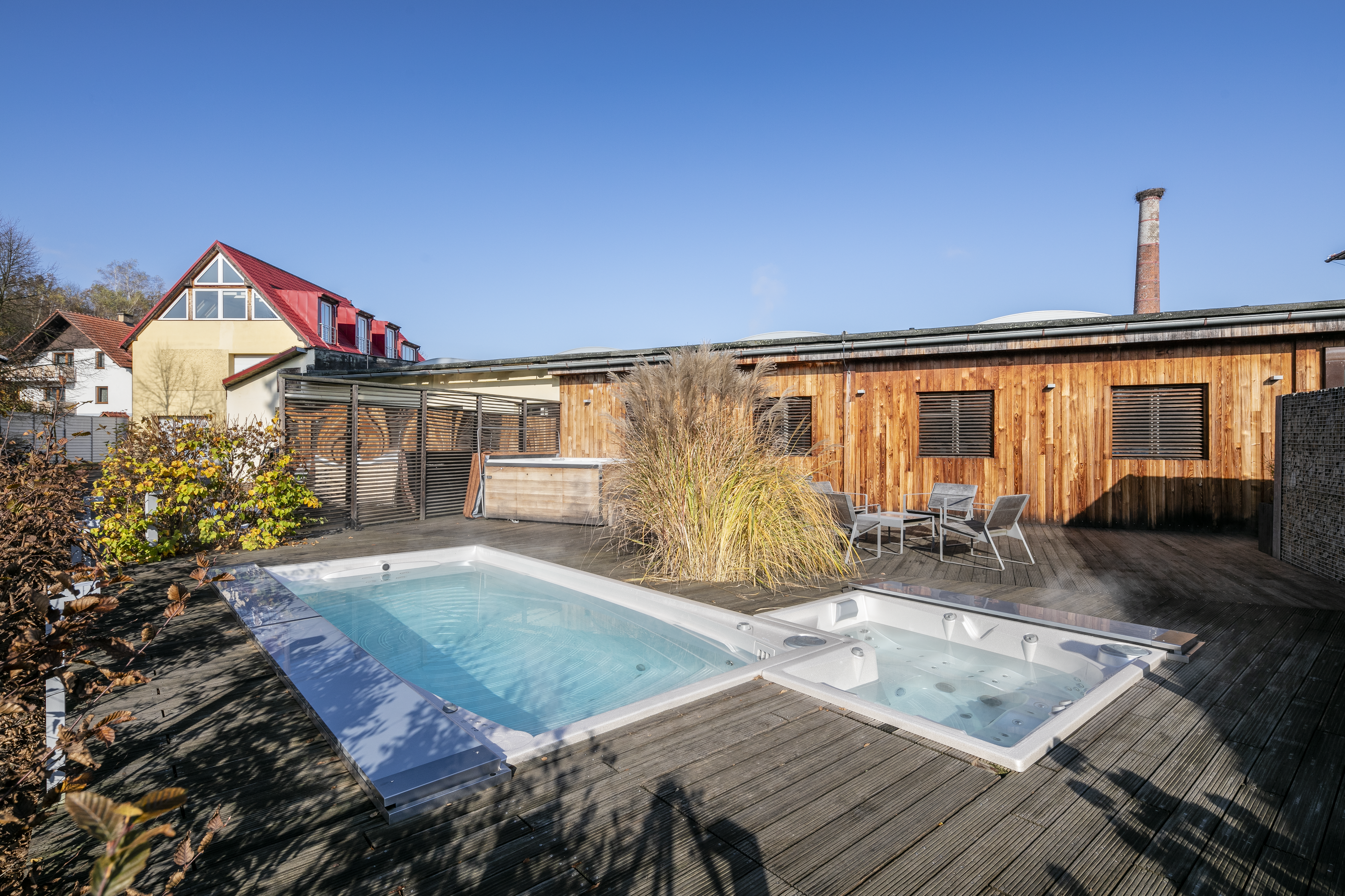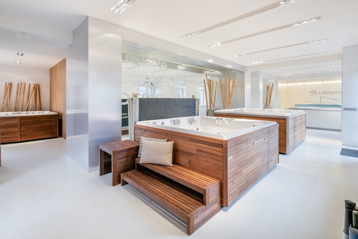 Showroom najdete v sídle společnosti, přímo v továrně, kde se naše spa nejen vyrábí, ale také vymýšlí a vyvíjí. Atmosféru umocňuje interiér budovy z počátku minulého století, který dodává místu nezaměnitelný charakter. Samozřejmostí je testovací zóna pod širým nebem.