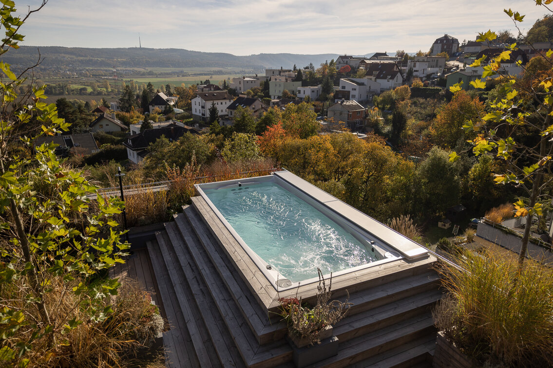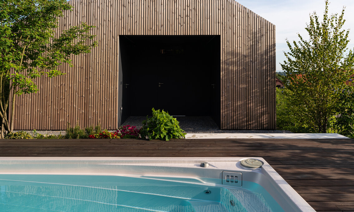 Komplexní design našich celoročních bazénů zahrnuje skořepinu a celý soubor funkčních prvků v čele s možnostmi zakrytí. Díky tomu swim spa není, na rozdíl od běžných bazénů, rušivým elementem v zahradě, ale elegantním prvkem, který je možné sladit s architekturou místa. Nemluvě o přínosu na straně úspor energií, včetně té vaší.