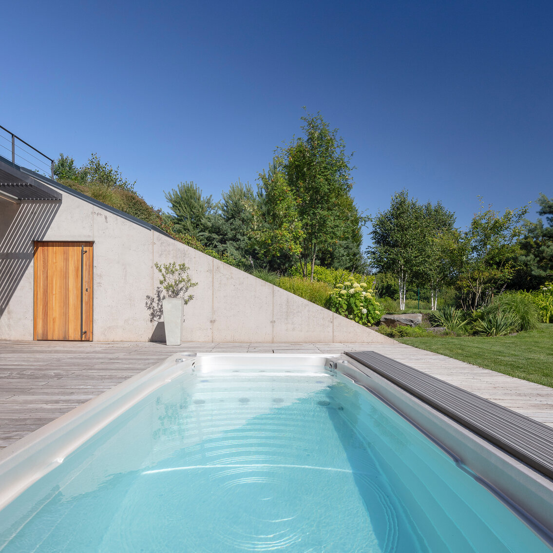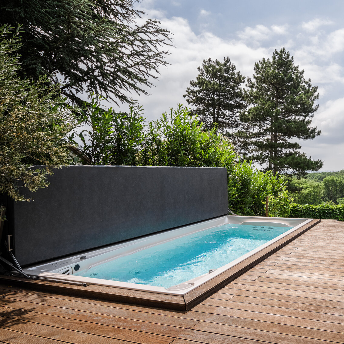Všechny swim spa mohou být na přání dodány bez kabinetu v přípravě pro zapuštění nebo obezdění.