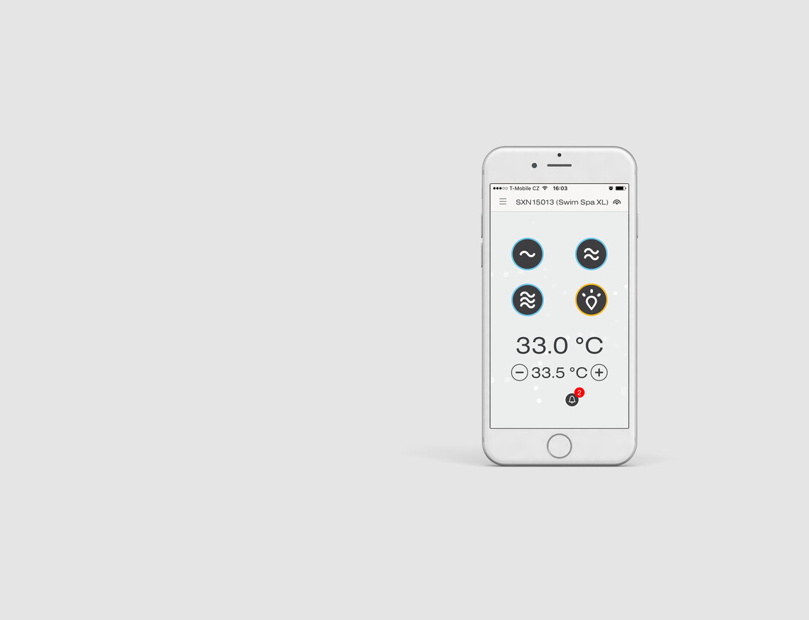 To nejdůležitější, protiproud a osvětlení, si spustíte stiskem tlačítek přímo na swim spa. Informace o teplotě a čase stráveném koupáním vidíte pohodlně z vody na displeji. S pokročilými funkcemi a vzdálenou správou si ale můžete pohrát skrze mobilní aplikaci. Swim spa lze také integrovat do systému chytré domácnosti.