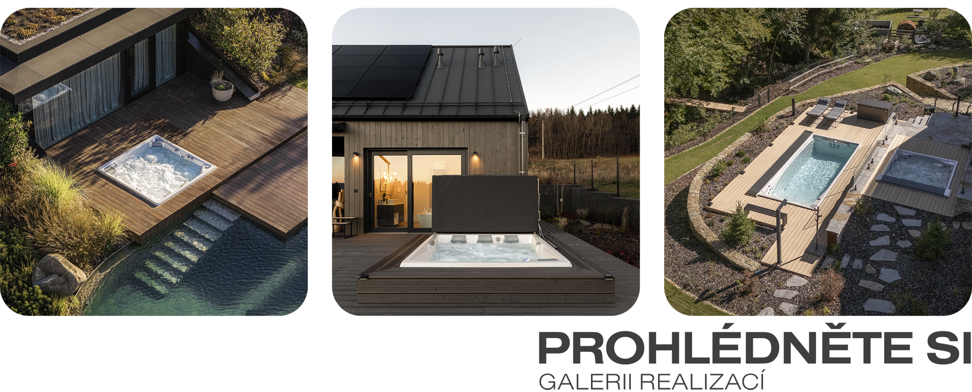Víme, jak důležité je si svou vysněnou vířivku nebo celoroční bazén swim spa před pořízením vyzkoušet. Na všech našich showroomech vás proto čeká testovací zóna v soukromí zahrady pod širým nebem. Zarelaxujete si ve vířivce, zaplavete ve swim spa a zjistíte, co vám vyhovuje nejvíce.