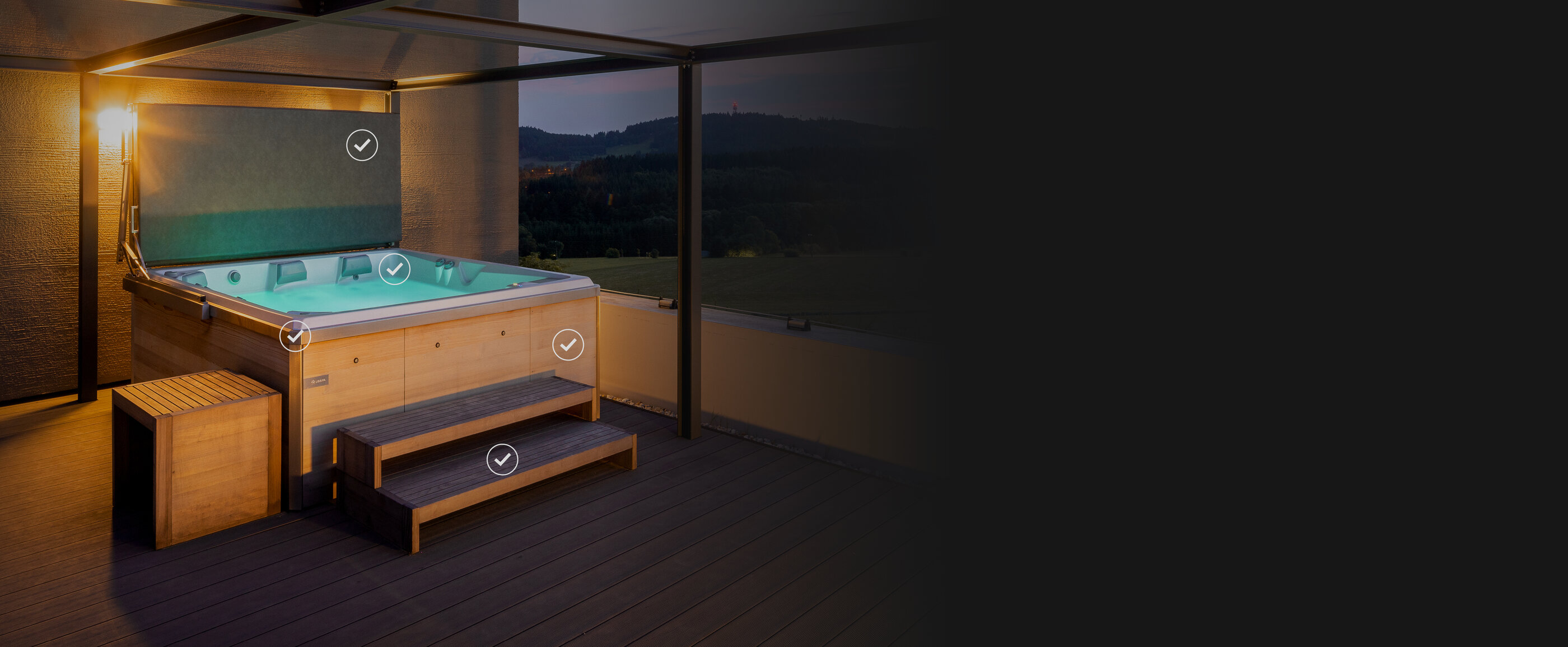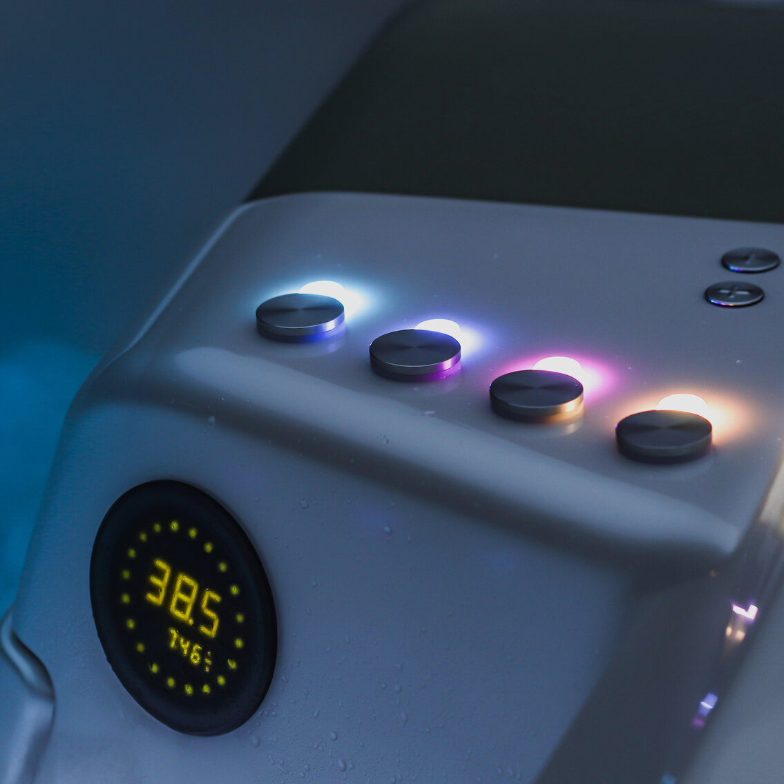 To nejdůležitější, masáže a osvětlení, ovládáte při koupeli stiskem tlačítek přímo na spa. Informace o teplotě a čase stráveném relaxací vidíte pohodlně z vody na displeji. S pokročilými funkcemi a vzdálenou správou si můžete pohrát skrze mobilní aplikaci. Spa lze také integrovat do systému chytré domácnosti.